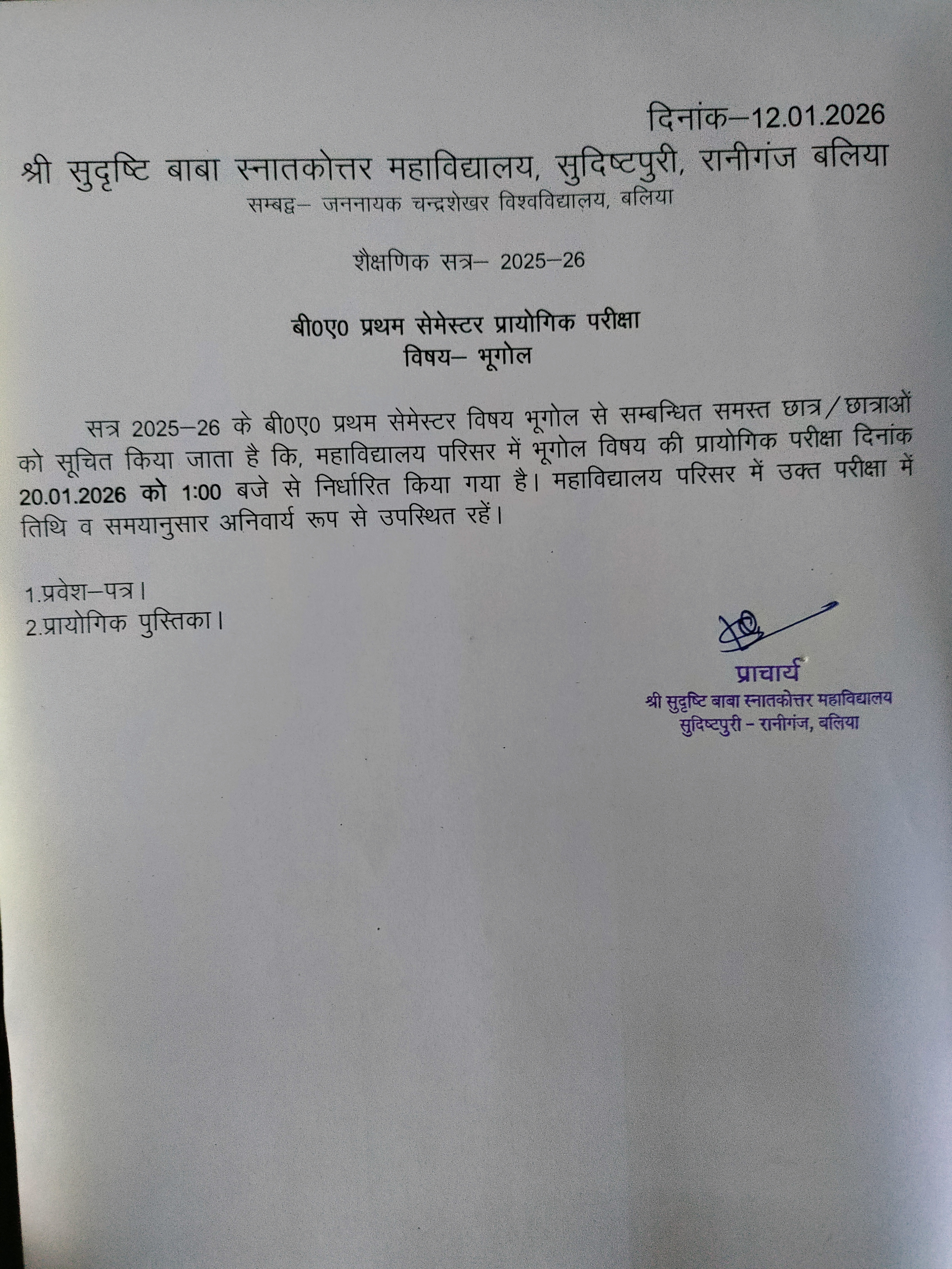 Notice for BA 1st Geography Practical Exam Date 20.01.26
