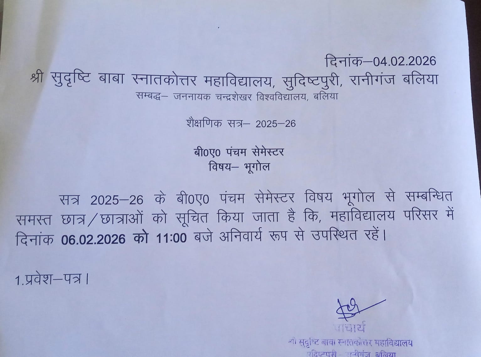 Notice for BA 5TH SEMESTER GEOGRAPHY PRACTICAL EXAM 06.02.2026