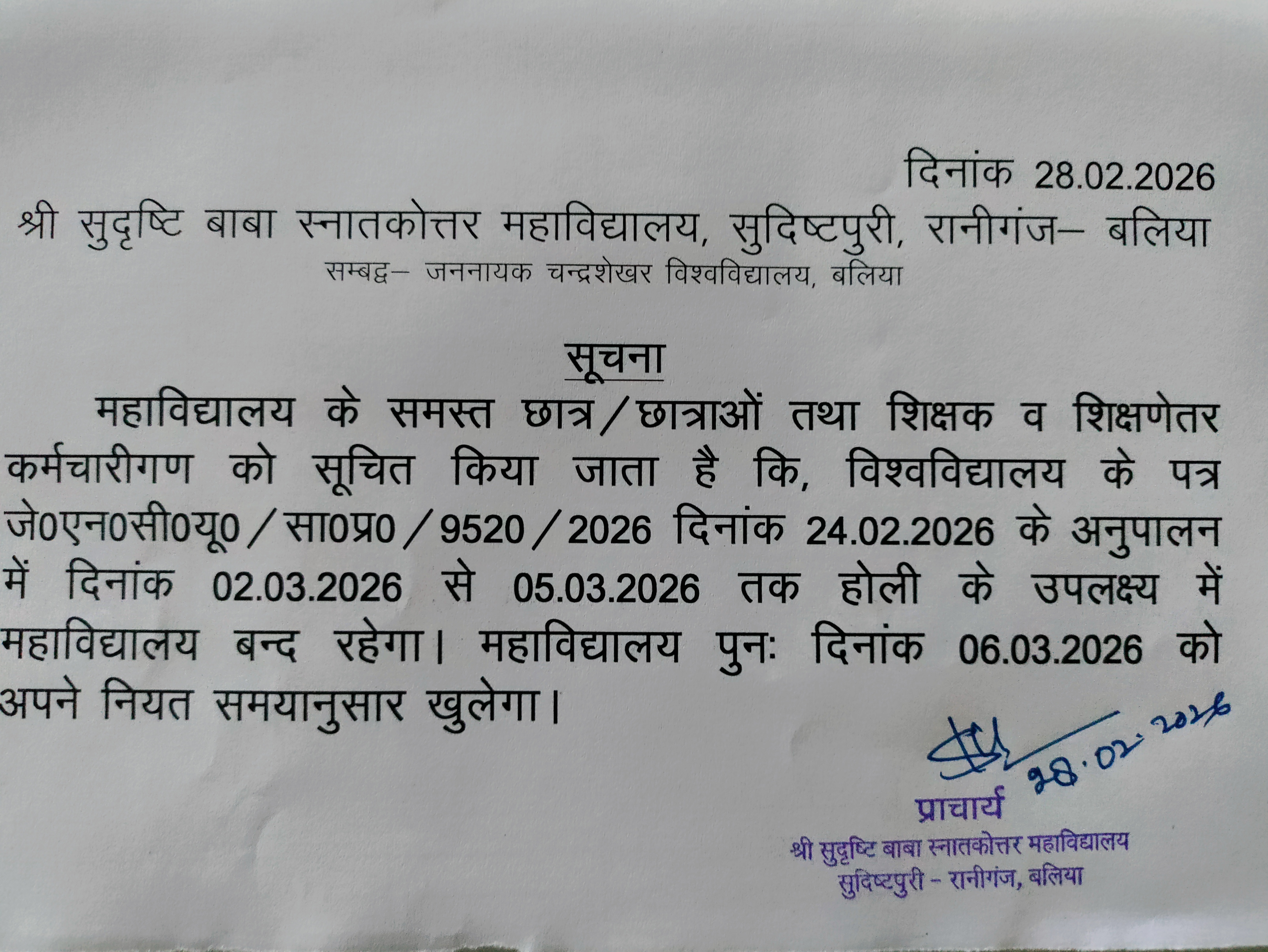 Download Notice for holi holiday 02.03.26 to 05.03.26